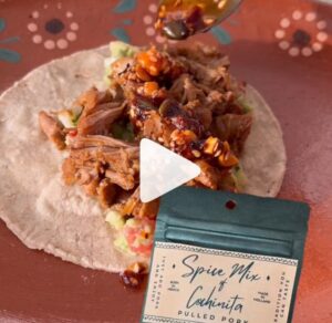 Cochinita betekent “varkentje” en Pibil is een traditionele kooktechniek van de Maya’s waarbij in een ondergrondse oven wordt gegaard. Dit gerecht uit Yucatán, Mexico, heeft een dieprode kleur met aardse tonen, een lichte rooksmaak en een klein zuurtje.